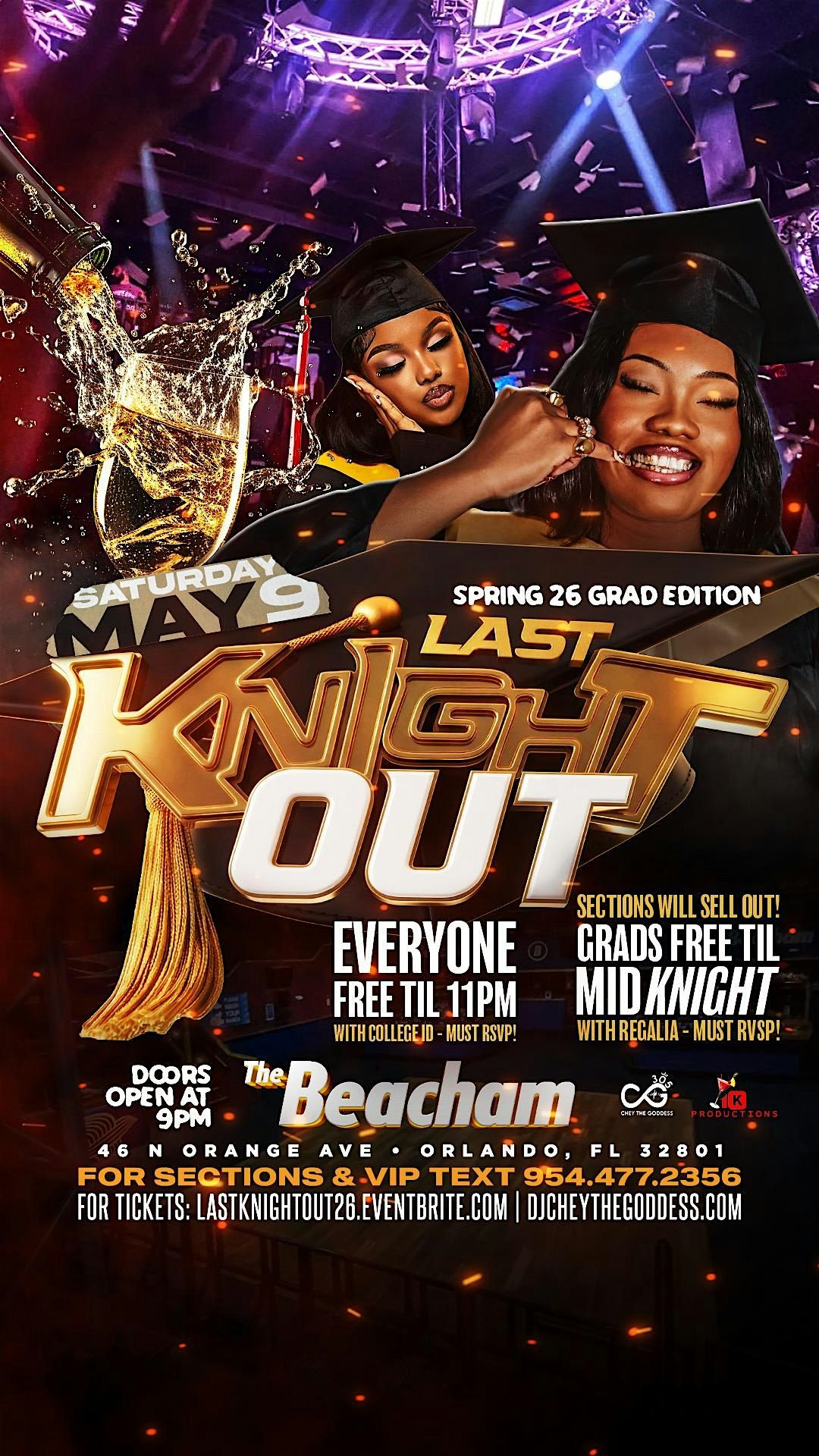 Join us Saturday, May 9, 2026 from 10PM–2AM at The Beacham Nightclub (Downtown Orlando) for a high-energy graduation celebration with music, good vibes, and a packed downtown crowd.
