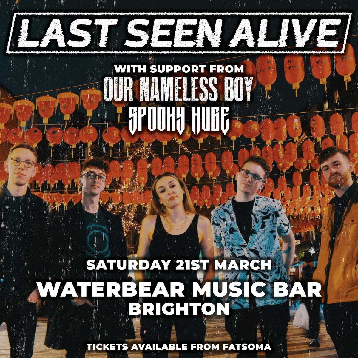 A night of alt rock at Waterbear Music Bar!Last Seen AliveBrighton-based alt-rock band blending heavy atmosphere, sharp songwriting, and raw emotion. With tracks like Dreams and Alive, they’ve carved out a space between cinematic intensity and stripped-back vulnerability—drawing in fans of artists like Wolf Alice, Nothing But Thieves, and Pvris.