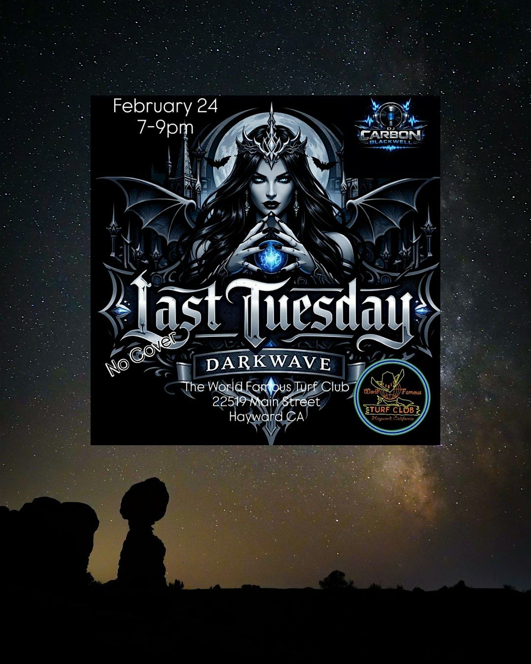 Get ready to dive into the moody vibes of Last Tuesday--Darkwave! This in-person event is all about darkwave beats and an unforgettable atmosphere. Whether you're a fan of the genre or just looking to experience something new, come hang out with us and soak in the sounds. Bring your friends, your passion for music, and let’s make it a night to remember!
