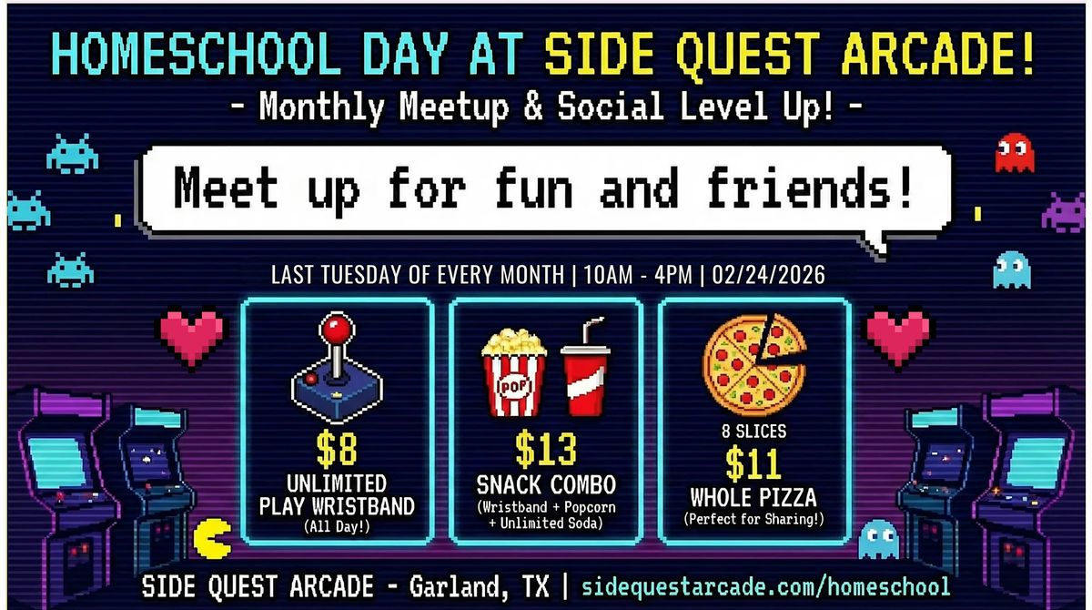 Hello Homeschool Families! Homeschool Monthly Arcade Meetup Alert!