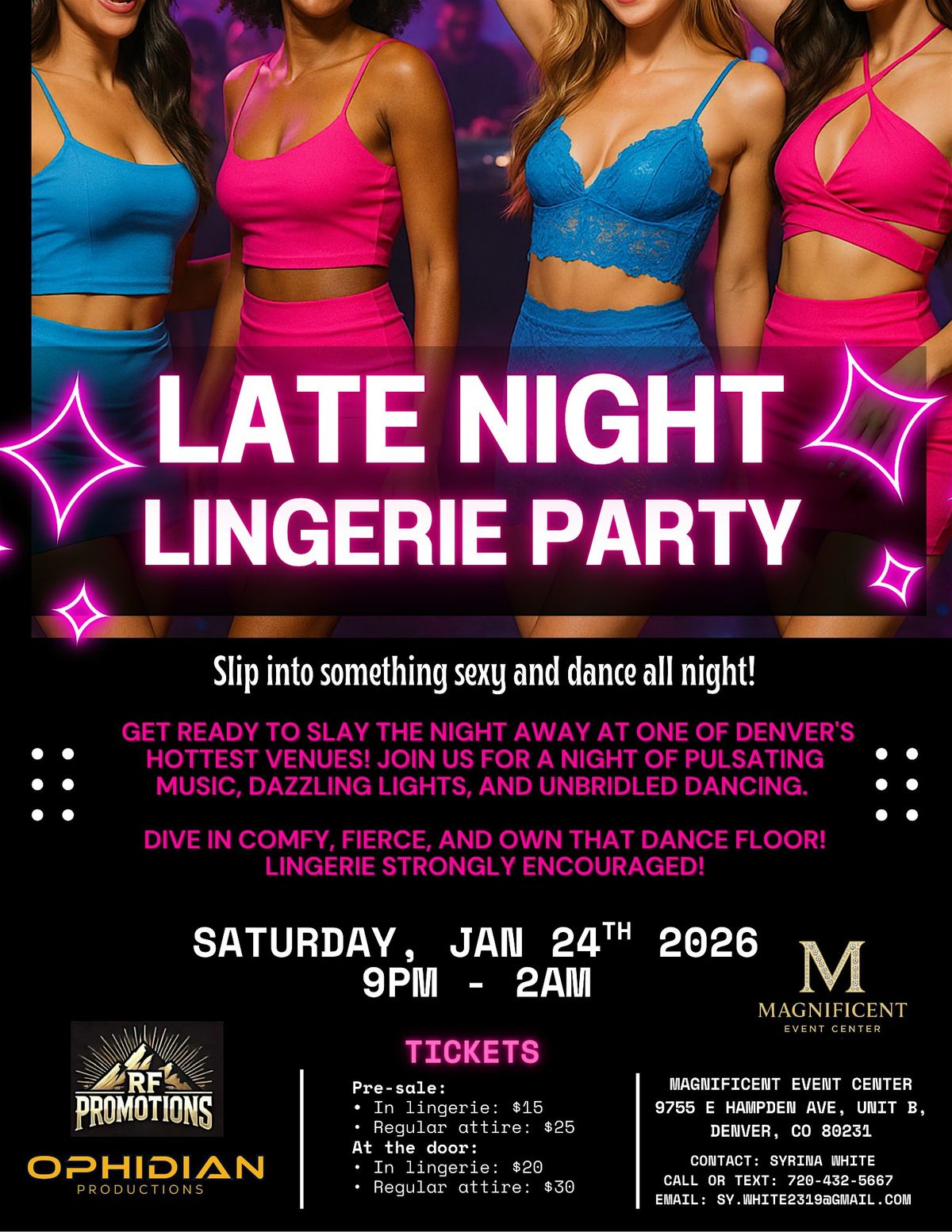 Get ready for a late-night dance party built for confidence, bold looks, and nonstop movement! Late Night Lingerie Party is taking over the Magnificent Event Center for a high-energy night of pulsing music, dazzling lights, and unfiltered dance floor vibes!