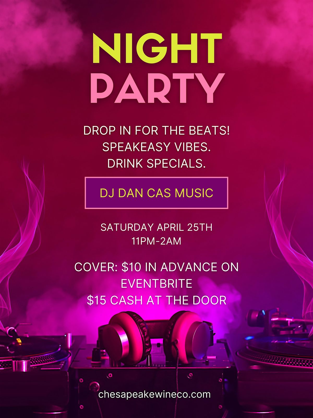 LATE NIGHT DJ Party with DJ Dan Cas Music. Speakeasy vibes, drink specials.About this Event