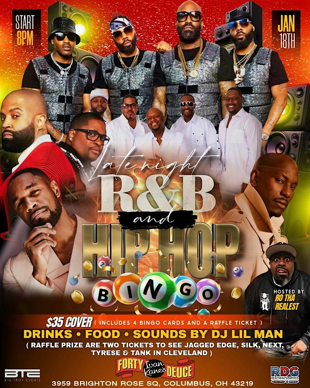 Come join us for some late fun and music at the Forty Deuce Easton m! Get ready to groove to the sounds of your favorite R&B and HIP-HOP songs while playing some exciting rounds of Bingo. Raffle Ticket Drawings and MORE! So bring your friends and enjoy the vibes. Don't miss out on this epic event!