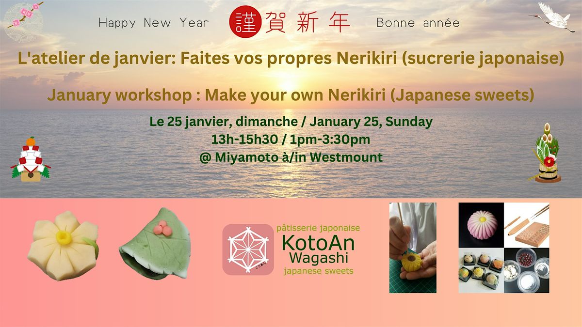 Nous, KotoAn Wagashi, allons tenir notre atelier de janvier pour faire vos propres Nerikiri à l'épicerie specialité japonaise à Westmount, chez Miyamoto.