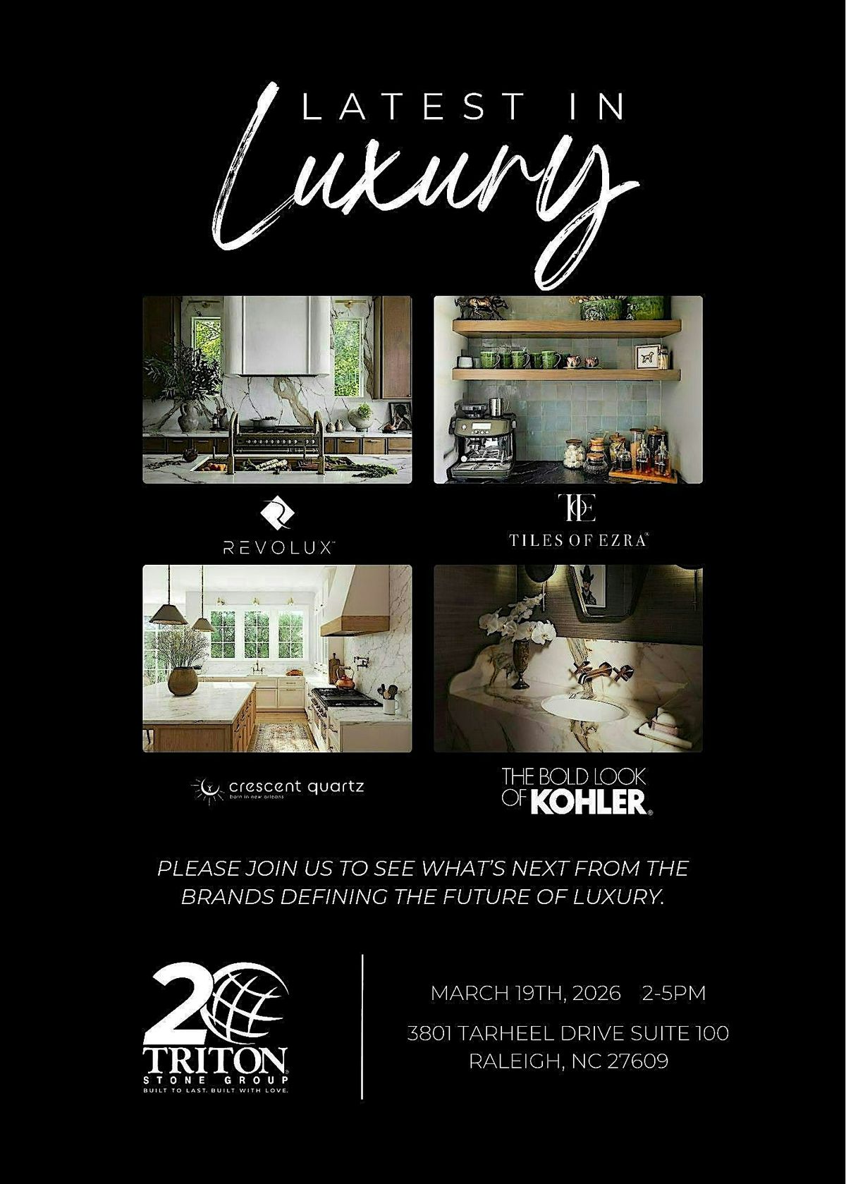 Latest in Luxury is Triton Stone Group’s 2026 campaign showcasing Crescent Quartz, Revolux, Kohler, and Tiles of Ezra—coming soon.