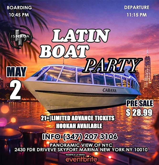 Join us on May 2nd for an unforgettable Latin Boat Party aboard , with two floors of music, NYC panoramic views, and limitAbout this Event