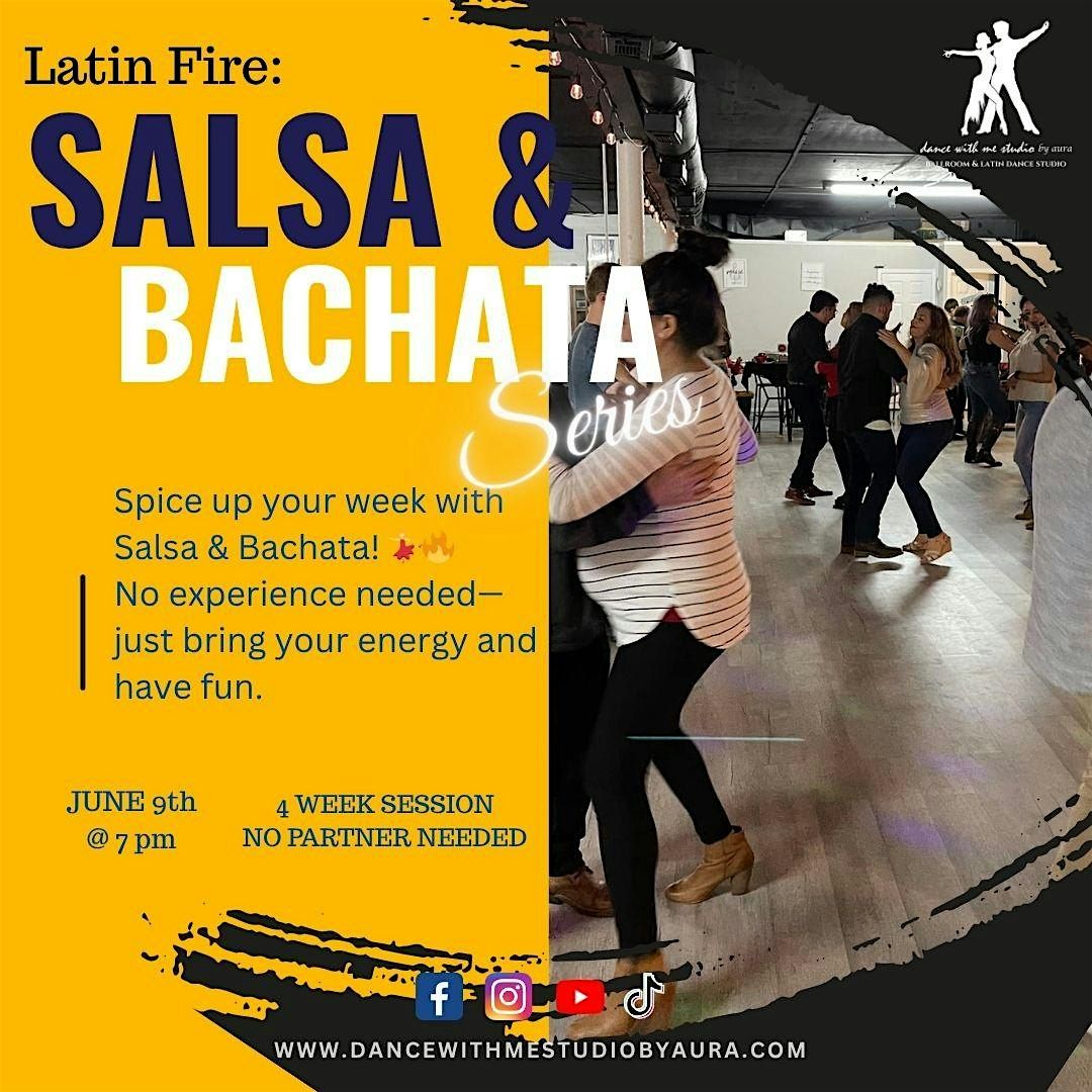 Let's set the dance floor on fire with our 'Latin fire' Dance Group Session, starting Tuesday, June 9th at 7:00 PM! This exciting 4-week series will have you moving to the vibrant rhythms of Salsa and Bachata. Beginners are especially welcome, and no partner is needed—just bring your enthusiasm and get ready to dance!
