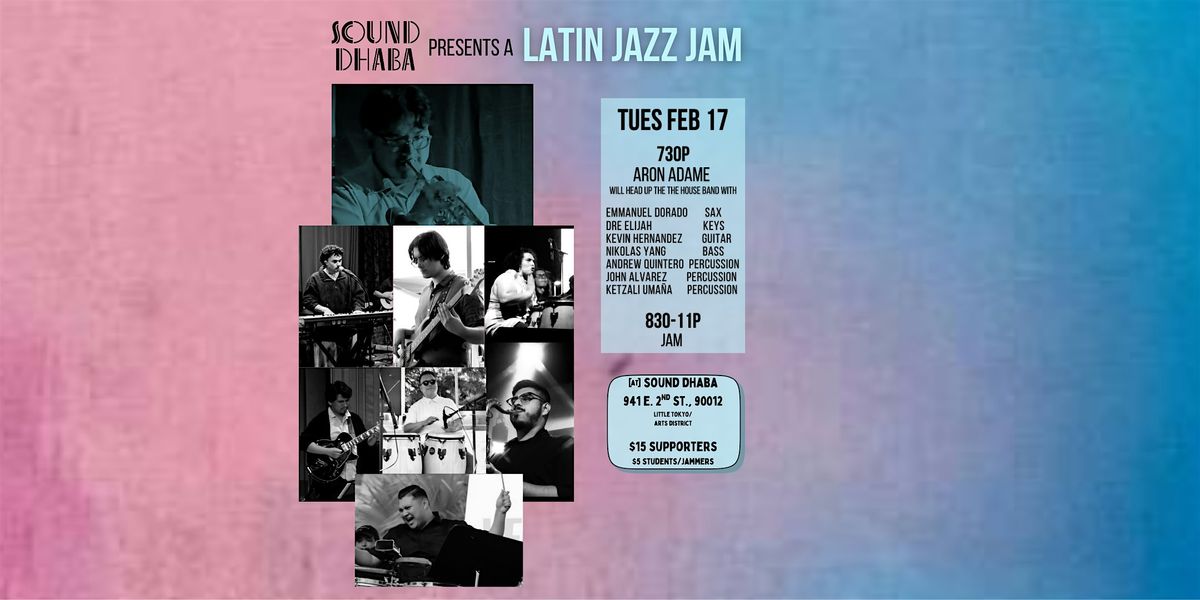 Aron Adame will be bringing his fresh energy to head up our monthly Latin Jazz Jam. Aron’s trumpet has crispness, clarity and energy which invoke the sound of the infamous Cuban trumpeter, Arturo Sandoval. Aron’s roots and desire to build community around Musica Latina run deep as he seeks to foster a culture that is encouraging and empowering. He takes his love of music and the trumpet from his father and, on the daily, tries to bring that love to his students in LAUSD.