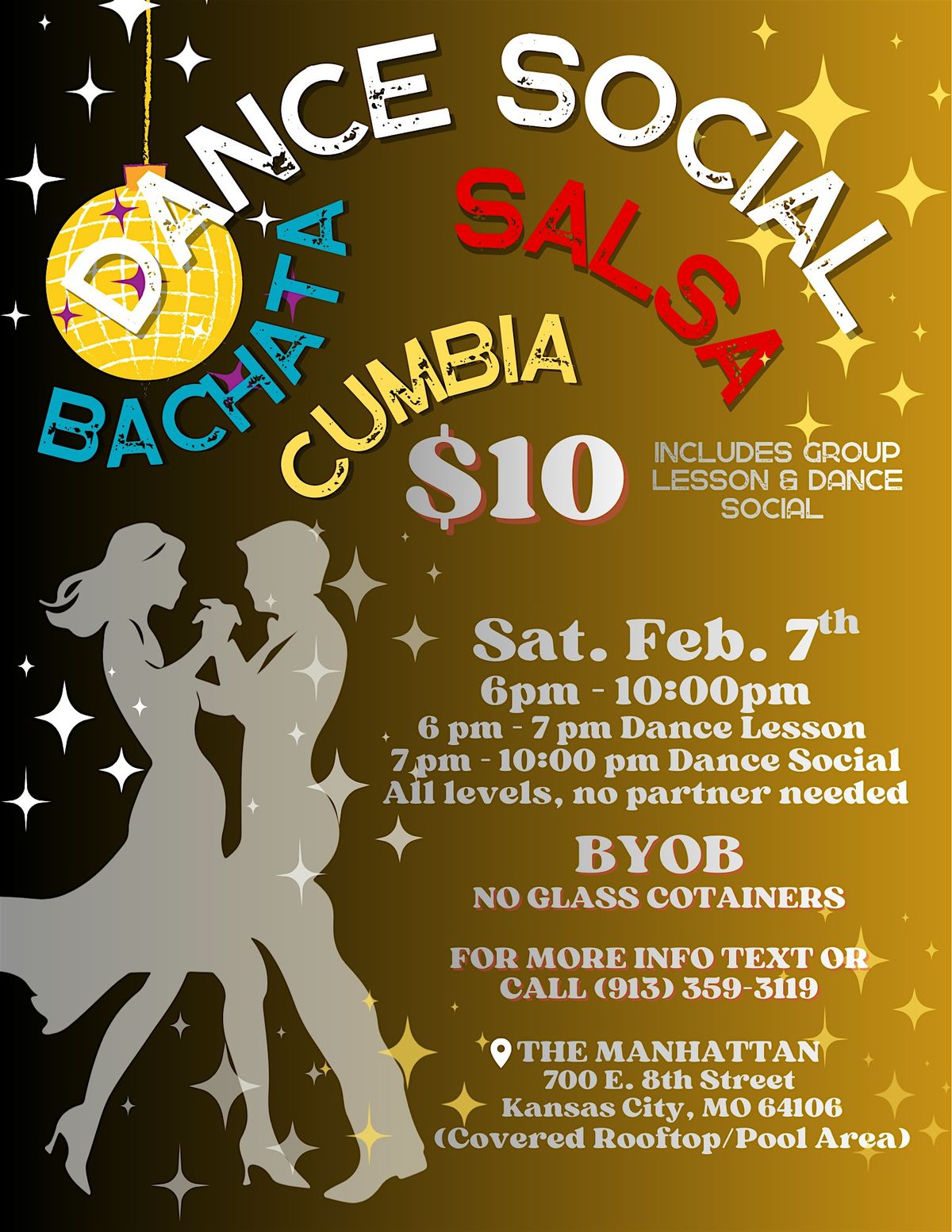 Come join us for an evening/night of Latin music social dancing at The Manhattan! Get ready to move your hips to the rhythm of salsa, bachata, and cumbia. Whether you're a seasoned dancer or just starting out, this event is perfect for anyone looking to have a great time and meet new people. So grab your dancing shoes and get ready to dance the night away! NO PARTNER NEEDED!