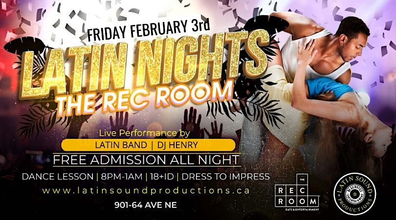 Ladies & Gentlemen, LATIN SOUND PRODUCTIONS & THE REC ROOM would like to invite you to another great night of Latin Entertainment and dance on us at the exclusive and beautiful The Hall on the 3rd floor Friday February 3rd, 2023