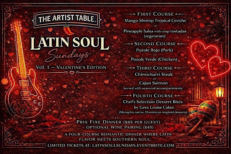 Latin Soul Sundays: Vol. 1 — Valentine’s Edition is an intimate, chef-driven dining experience where bold Latin flavor meets Southern soul.