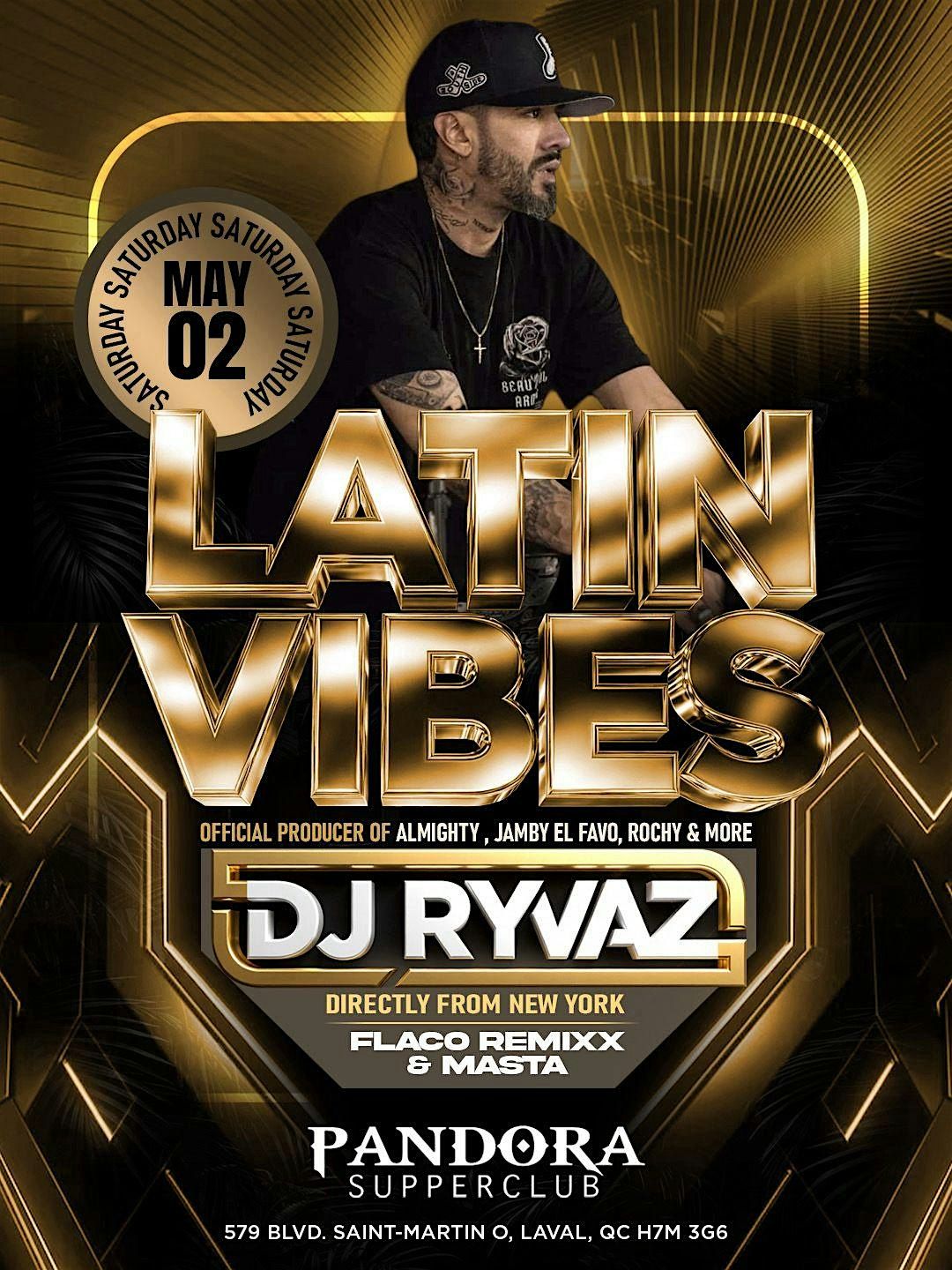 Get ready for an epic night at Pandora Supper Club with the one and only DJ Ryvaz spinning the hottest Latin beats straight from New York! Join us on May 2, 2026 at 10:00 PM (Eastern Time) for a party full of good vibes, great music, and unforgettable moments. Don’t miss out on the fun—bring your crew and dance the night away!