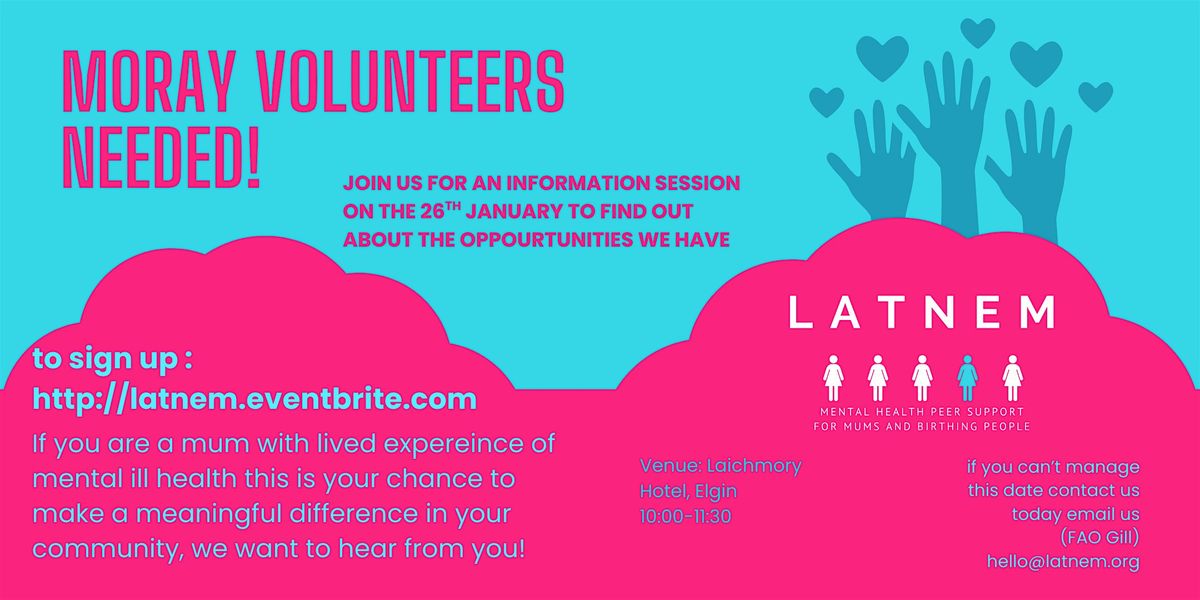 LATNEM have a wealth of volunteering opportunities available, we'd love it if you could join us at The Laichmoray Hotel in Elgin so we can tell you more and answer your questions - over coffee and cake, of course.