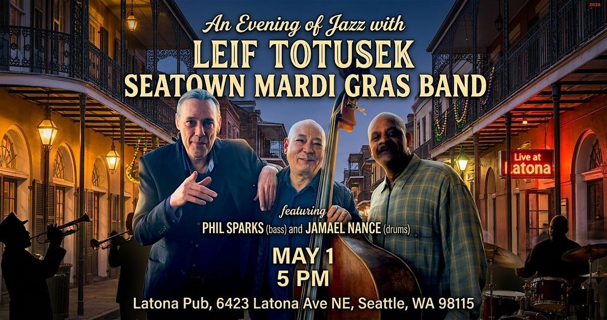 FRI MAY 1, 2026, Latona Pub Presents ... Leif Totusek "Seatown Mardi Gras Band" Featuring Phil Sparks (bass) & Jamael Anthony Nance (drums)