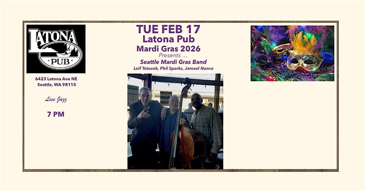 TUE FEB 17 Latona Pub Presents ... Seatown Mardi Gras Band