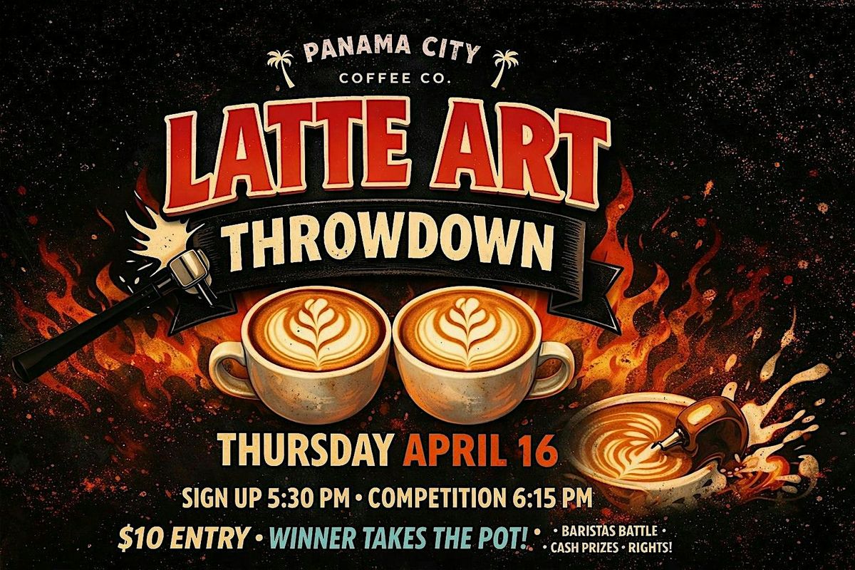 Join us April 16th for an all-out Latte Art Throwdown at Panama City Coffee Co. Downtown. Baristas will go head-to-head in bracket-style battles, pouring live, under pressure, for cash, bragging rights, and serious respect. $10 to enter via Eventbrite $20 at the door.