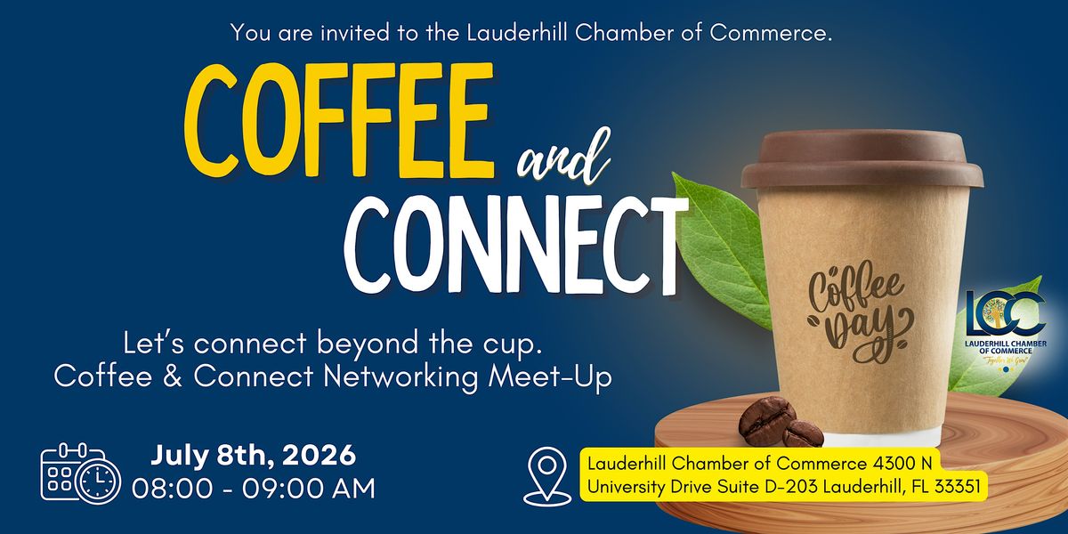 Let’s connect beyond the cup. Coffee & Connect is a welcoming morning networking meet-up hosted by the Lauderhill Chamber of Commerce, designed to bring together local business owners, entrepreneurs, professionals, and community leaders in a relaxed, relationship-focused setting.