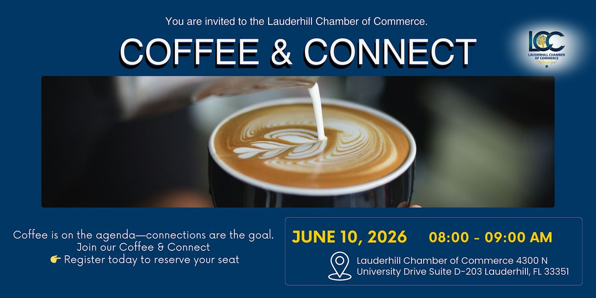 Whether you’re a small business owner, startup founder, nonprofit leader, or corporate professional, Coffee & Connect is the perfect opportunity to expand your network, exchange ideas, and stay connected to the Lauderhill business community.
