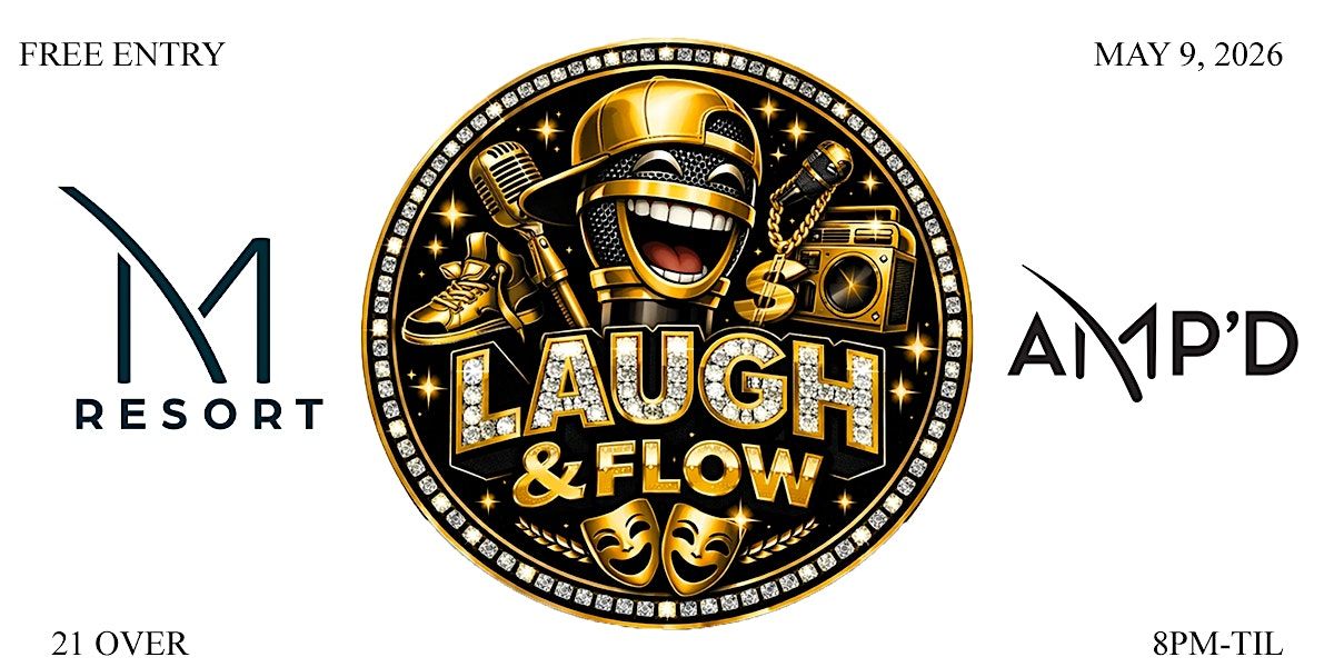 Laugh & Flow Comedy. 90s Hip-Hop and R&B with live performances. Adult Vibes. Starting May 9, 2026 8pm-Til. Free Entry for Everyone.