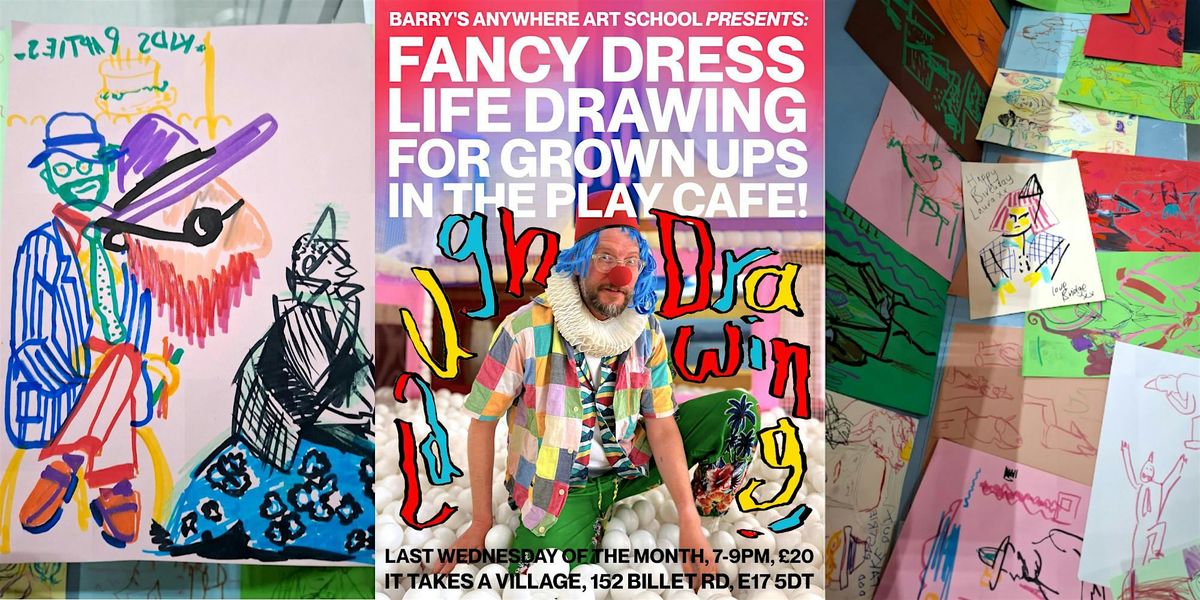 Set amongst the play equiptment of a kids soft play cafe, you'll leave with a stack of wonderful drawings you had no idea you were capable of!