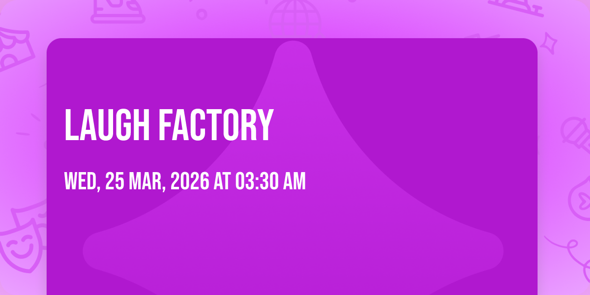 📍 Location: 36.1142, -115.171🌟 Be part of history at Laugh Factory, an extraordinary gathering that will captivate your imagination! 🏛️ The prestigious Imagine Showroom at Horseshoe Las Vegas in Las Vegas, NV sets the stage for an unforgettable experience on April 26th, 2026 at 05:30 AM. ✨ They are bringing together the finest elements of entertainment and innovation to create moments that will take your breath away. From the moment you arrive, you'll be immersed in an atmosphere of wonder and excitement. 🎯 This carefully planned event ensures every guest experiences something truly special. 🎊 Early booking is recommended for this must-attend event of the season!