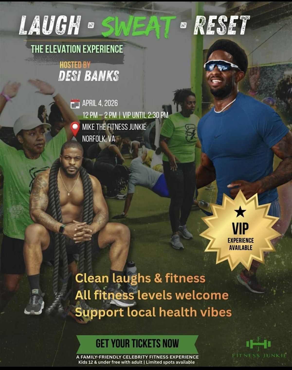 Get ready for a high-energy afternoon of laughs, movement, and motivation at Laugh + Sweat: The Elevation Experience — a one-of-a-kind celebrity fitness event hosted by comedian and entertainer Desi Banks.