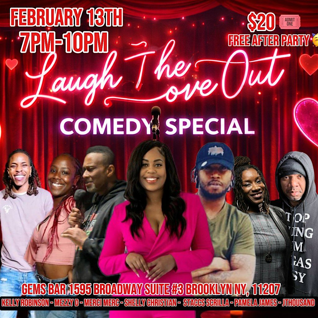 "Laugh The Love Out" is a Valentine's Day comedy experience designed for couples, singles, situationships, and anyone who's ever loved too hard or laughed through the pain.