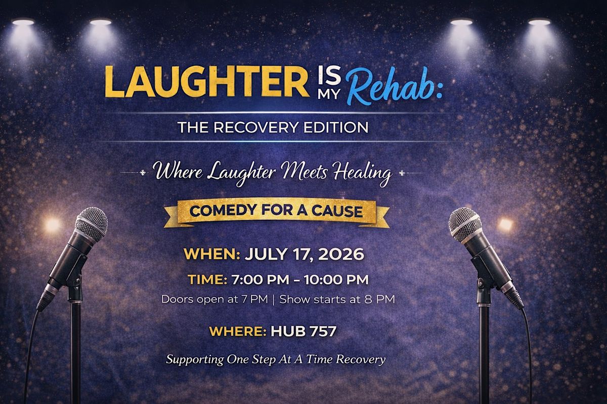 Laughter Is My Rehab: Recovery Edition brings the community together to raise awareness around addiction, support individuals in recovery, and create a space where joy and healing can exist in the same room.
