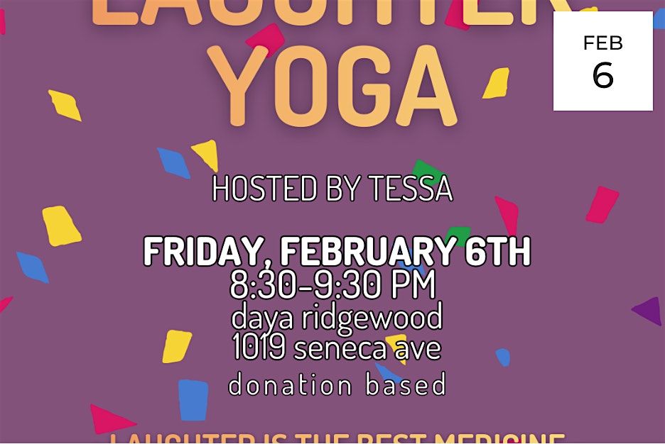 Laughter Yoga was created by Indian physician Dr. Madan Kataria after studying the many benefits that laughter has on the body, mind, and spirit. Laughter Yoga includes laughter exercises combined with pranayama (breathing techniques) that brings more oxygen to our body and brain, making us feel more energetic and healthy. These practices are proven to reduce stress, strengthen your immune system and bring positivity + joy into your life. This is a time to expand your relationship with laughter, make connections with your community, and start the weekend with pure joy and silliness.