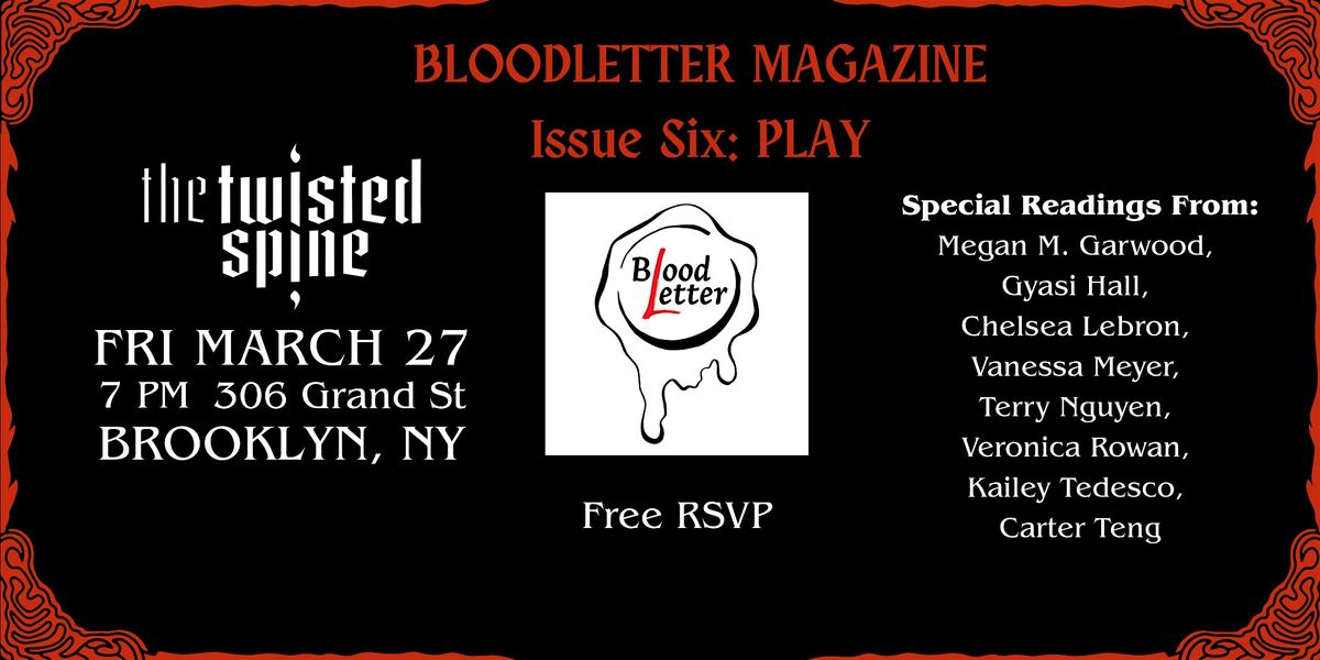 This one’s for the kids who skipped tag and read Goosebumps at recess. Join us on March 27th at 7pm to celebrate the release of Bloodletter Magazine Issue Six: Play. The evening will feature readings from Issue Six contributors followed by a reception. Grab your tickets and Come play with us, Danny!