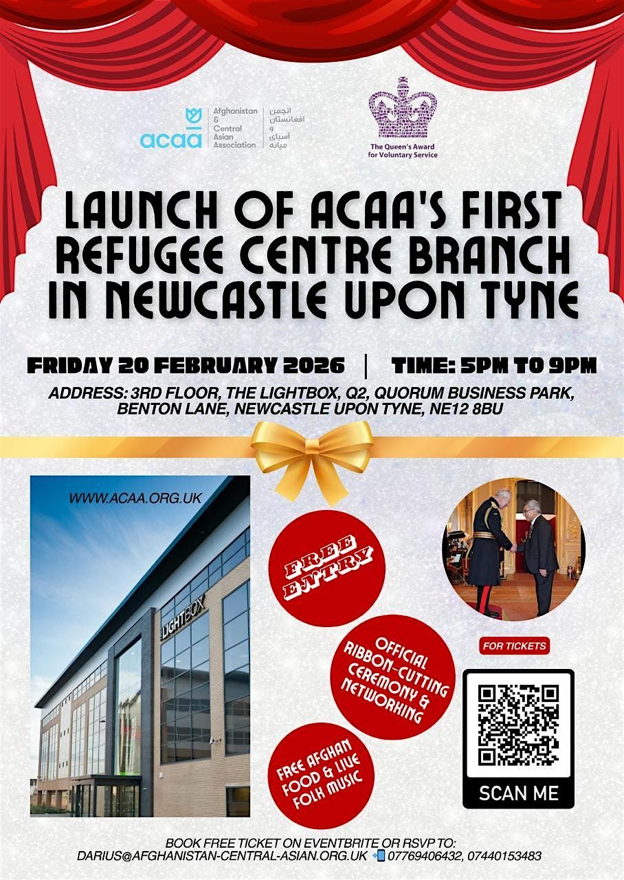 We are delighted to invite you to the official launch of the Afghanistan & Central Asian Association (ACAA) Newcastle upon Tyne Branch. This event marks a significant step in expanding ACAA’s work in the North East, with a strong focus on supporting refugees and migrants, promoting inclusion, and strengthening community cohesion across Newcastle and the surrounding areas.