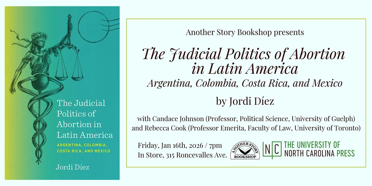 Join us for the launch of THE JUDICIAL POLITICS OF ABORTION IN LATIN AMERICA, by Jordi Díez! With Candace Johnson and Rebecca Cook.
