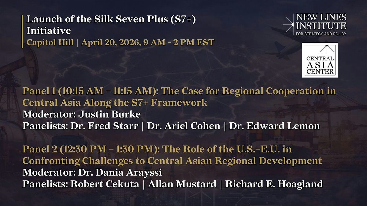 The Central Asia Center at the New Lines Institute for Strategy and Policy is pleased to announce the launch of the Silk Seven Plus (S7+) initiative on Capitol Hill — a framework to deepen regional integration across Central Asia while expanding connectivity to global markets.