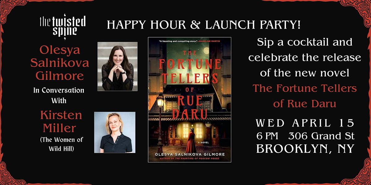 Each ticket includes either a copy of THE FORTUNE TELLERS OF RUE DARU or a $15 Twisted Spine gift card, alongside a drink ticket for beverage at The Twisted Spine.