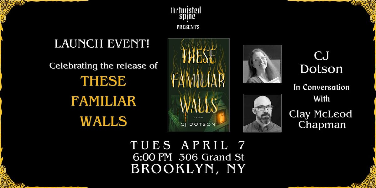 Each ticket includes either a copy ofTHESE FAMILIAR WALLS or a $15 Twisted Spine gift card.