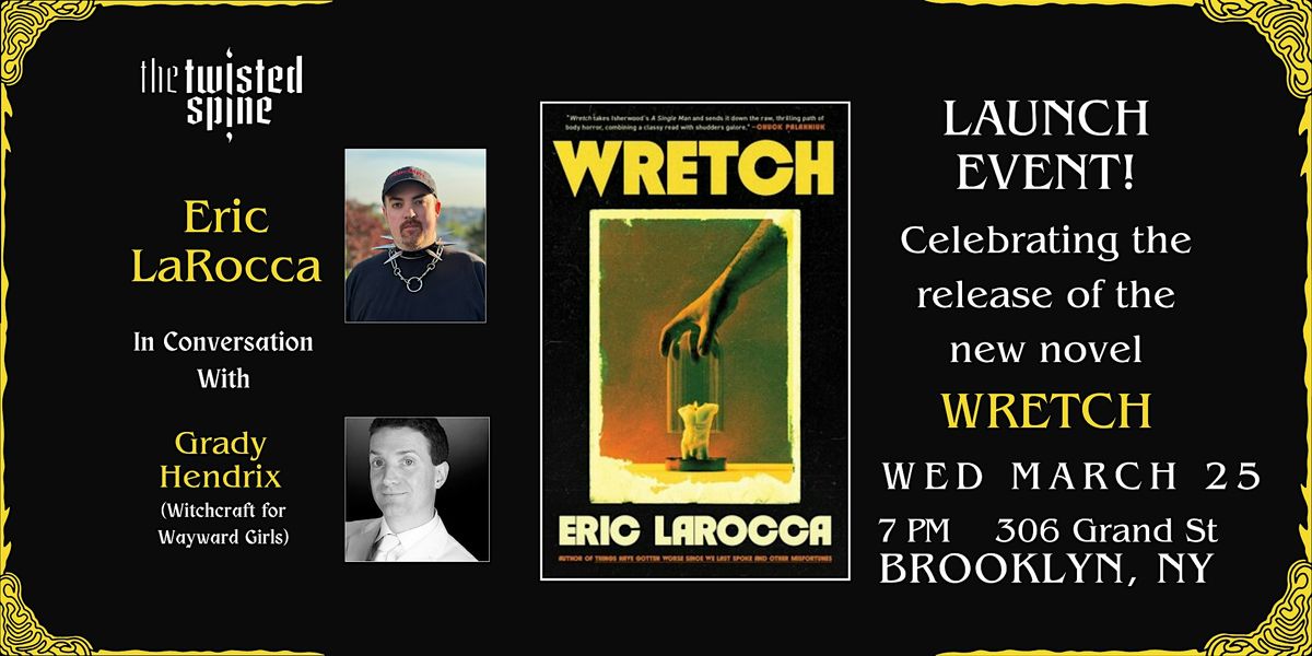 Join us on March 25, 2026 at 7:00 PM for the unveiling of the exciting new release WRETCH, OR THE UNBECOMING OF PORCELAIN KHAW by author Eric LaRocca. Joining LaRocca in conversation will be author Grady Hendrix (WITCHCRAFT FOR WAYWARD GIRLS).
