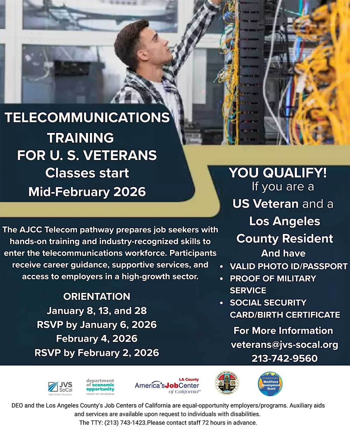 Join us for an informational session introducing Los Angeles County Veterans to an exciting Telecommunications (Telecom) Career Pathway.About this Event