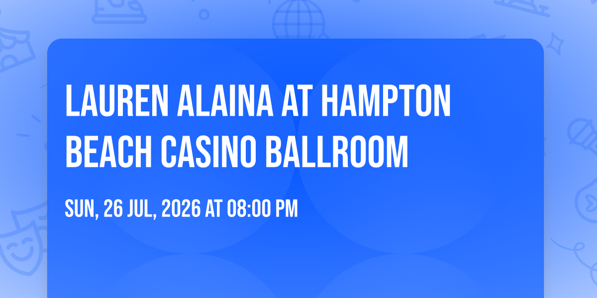 🌟 Step into a world of wonder at Lauren Alaina at Hampton Beach Casino Ballroom, where extraordinary moments await! 🏛️ Located at Hampton Beach Casino Ballroom in dynamic Hampton, NH, this event will become the talk of the town. 📅 Join us on July 26th, 2026 at 08:00 PM for a celebration that defies the ordinary. ✨ This curated experience brings together the best of entertainment, culture, and community spirit. Every detail has been thoughtfully planned to ensure an unforgettable experience for all our guests. 🎯 Take advantage of this opportunity to be part of something special. 🎊 Early registration is recommended as space is limited!
