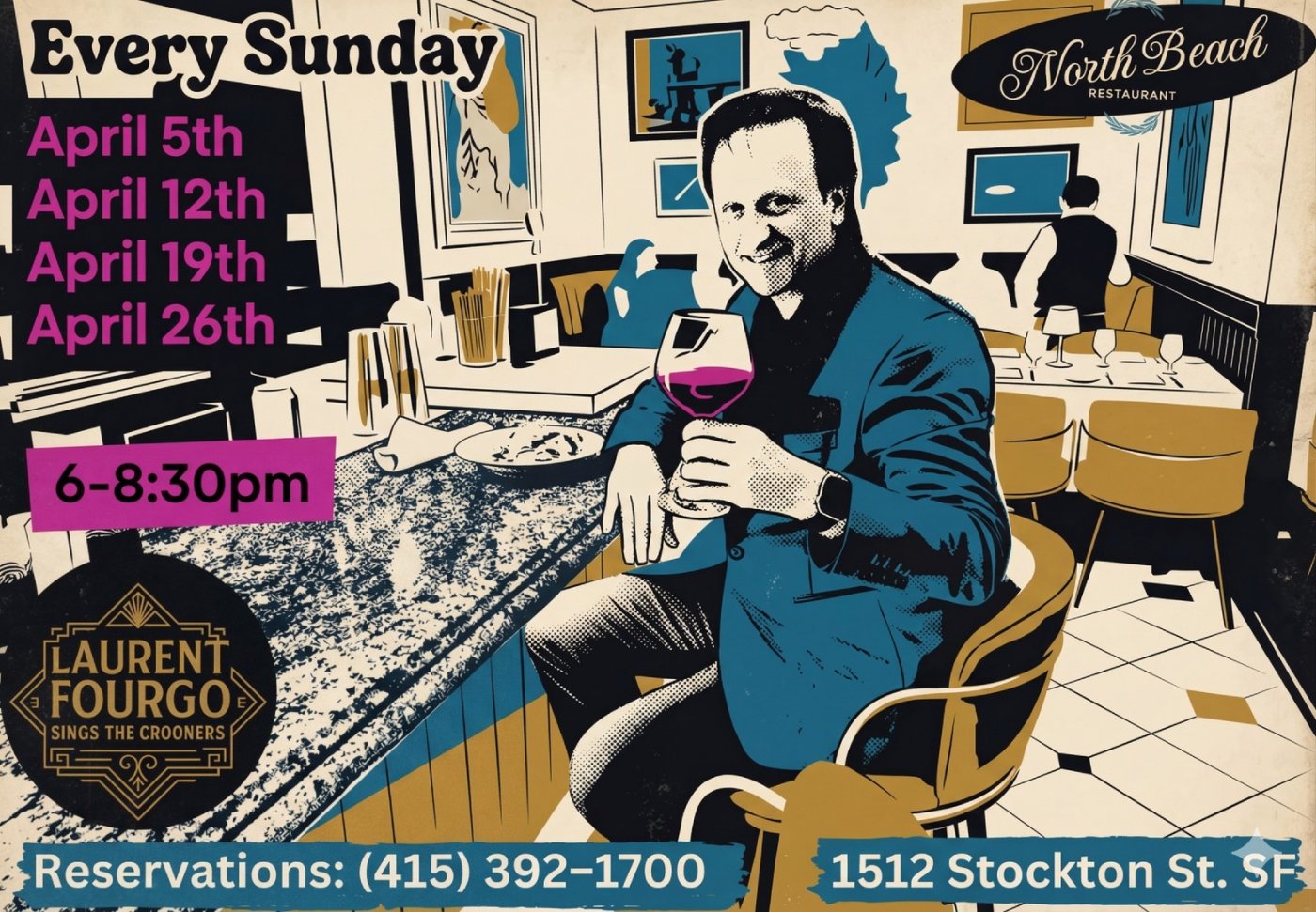 Laurent Fourgo brings his smooth, timeless crooner style to the heart of San Francisco’s historic North Beach Restaurant!