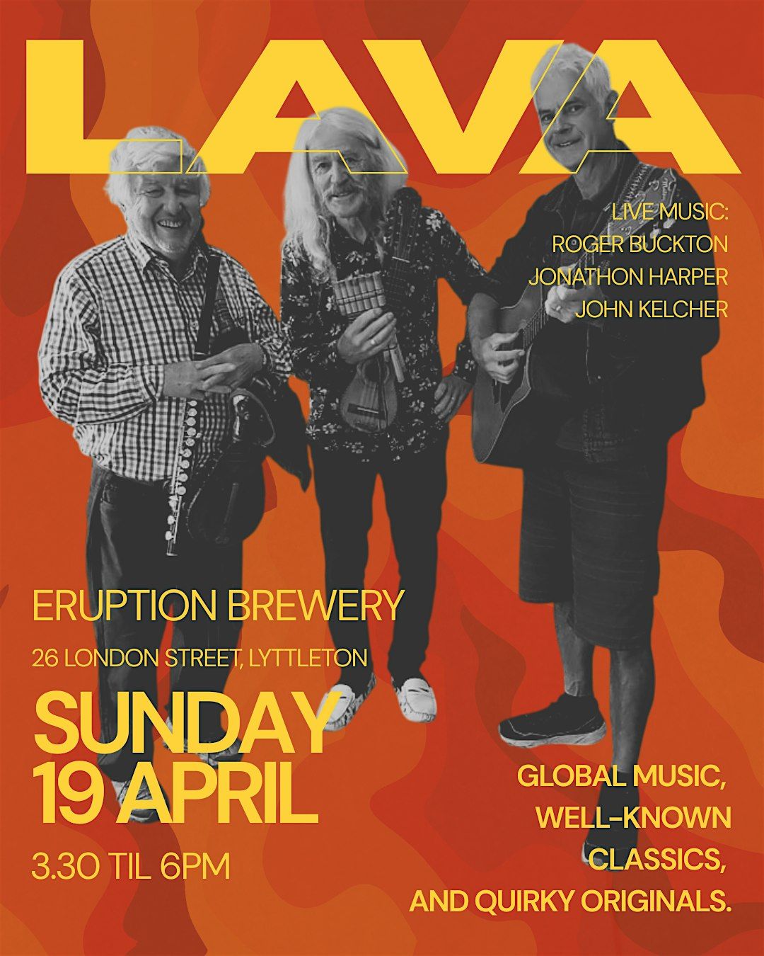 Come and see local music legends Roger Buckton, Jonathon Harper, and John Kelcher perform for FREE at Lyttleton brewery Eruption.