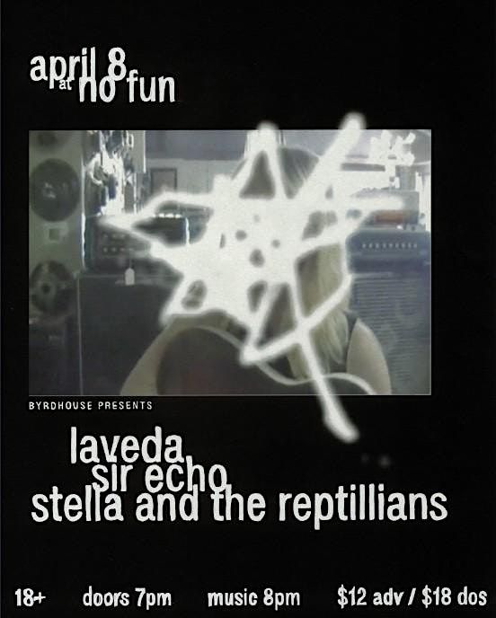 Byrdhouse Records presents Laveda, Sir Echo, and Stella & The Reptilians on April 8th at No Fun in Troy, NY! Doors at 7PM, Music at 8PM