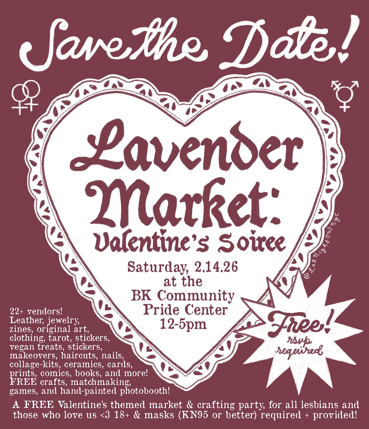 Join us February 14th for a very special Valentine's edition of Lavender Market! Featuring 20+ lovely vendors, cozy community crafts (come make Valentines with us!), tarot, raffles/giveaways, and yummy vegan treats... you won’t want to miss it! Bring a date, some friends, or just yourself ;)