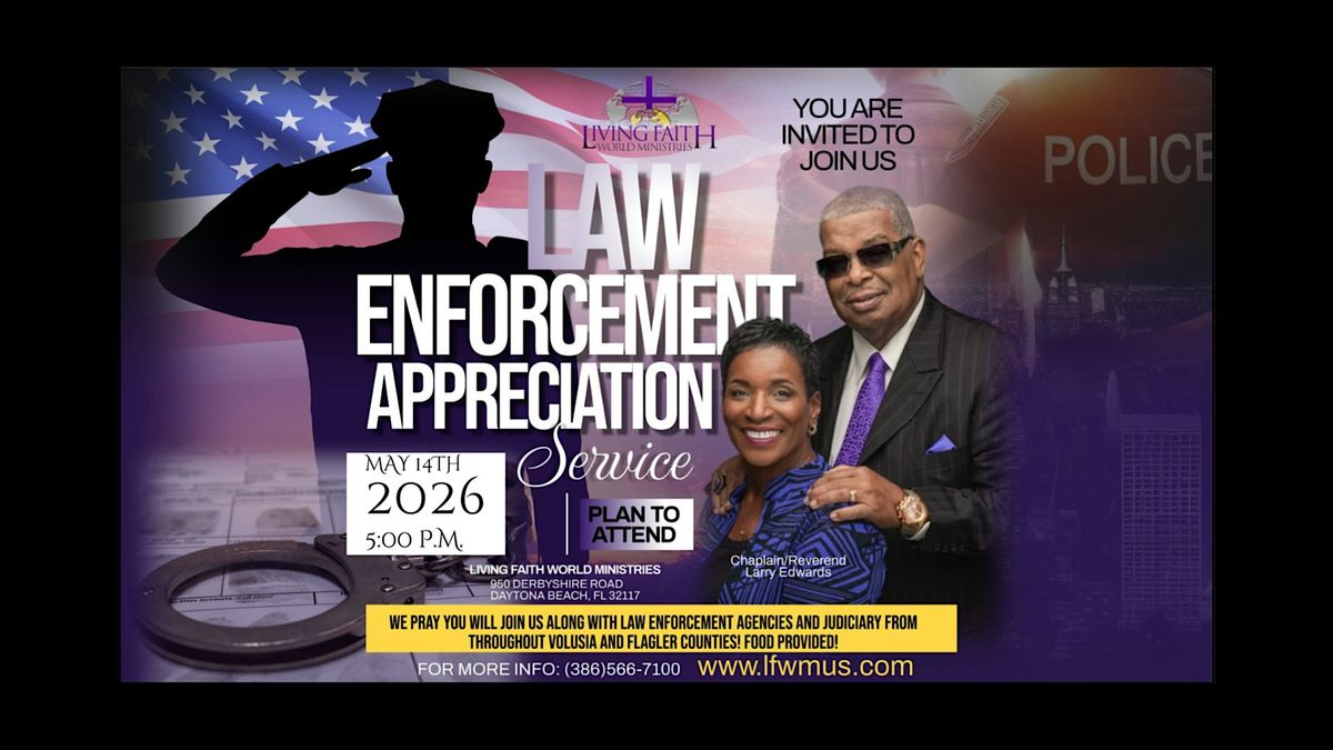 Join Living Faith World Ministries for our powerful Annual Law Enforcement Appreciation Day. This unique community event is dedicated to honoring the men and women who serve and protect our neighborhoods in Daytona Beach and throughout Volusia and Flagler County.