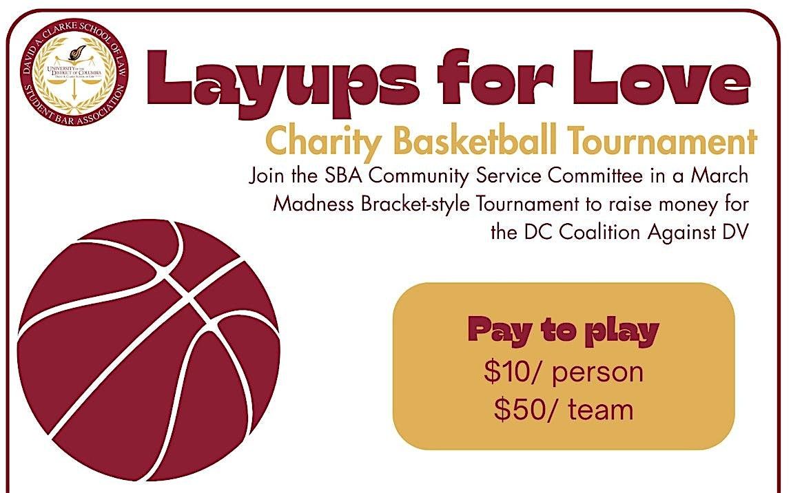The UDC Law SBA Community Service Committee is hosting a March Madness style basketball tournament to raise money for the DC Coalition Against Domestic Violence!