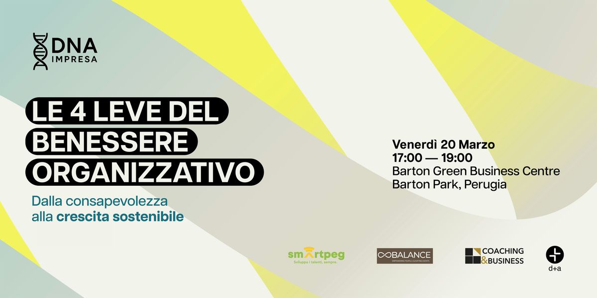 DNA Impresa – Le 4 leve del benessere organizzativo è un evento esclusivo dedicato a imprenditori e manager che vogliono comprendere come funziona davvero la propria organizzazione e su quali dimensioni intervenire per generare valore nel tempo.