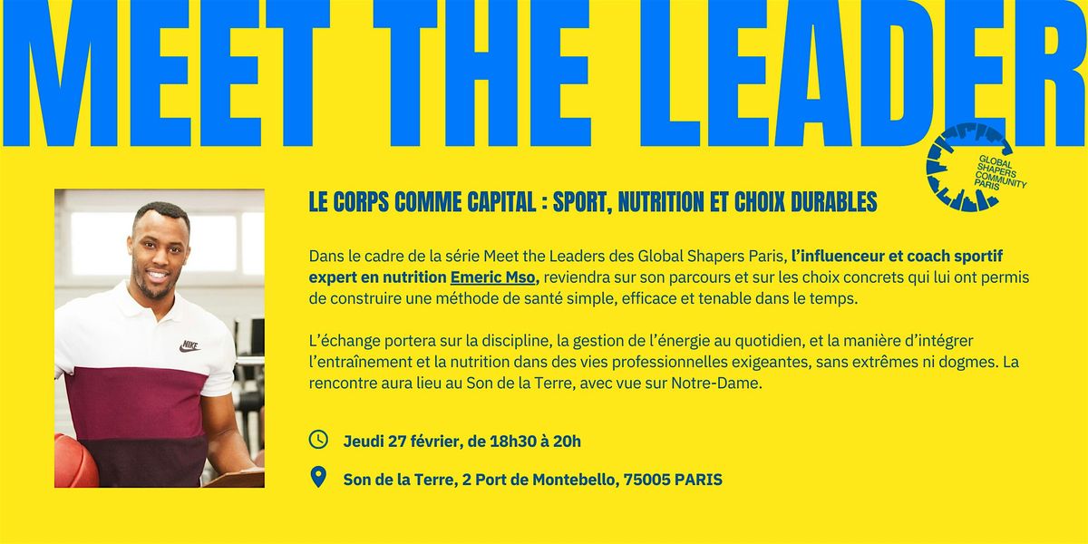 Dans le cadre de la série Meet the Leaders des Global Shapers Paris, notre Shaper Alice Vandenberghe invite l’influenceur et coach sportif expert en nutrition Emeric Mso, pour raconter son parcours et les choix concrets qui lui ont permis de construire une méthode de santé simple, efficace et tenable dans le temps.