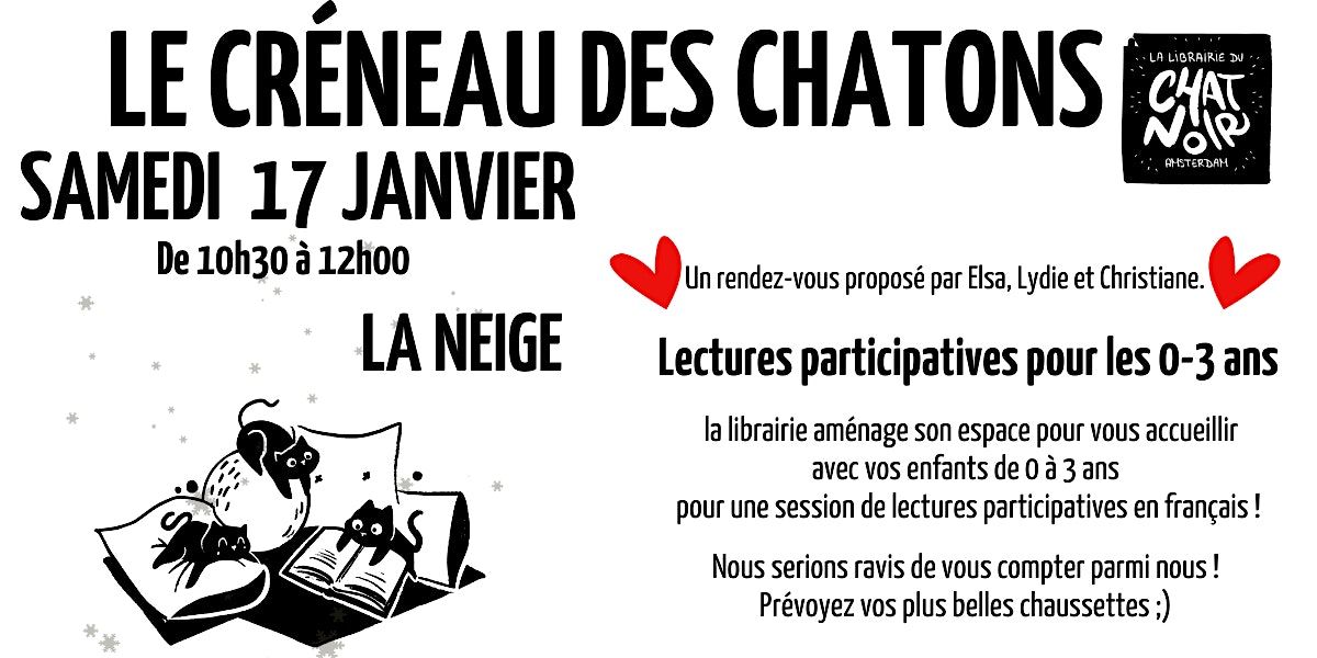 Cette activité est offerte gratuitement par la Librairie du Chat Noir et animée bénévolement par Elsa, Lydie et Christiane.