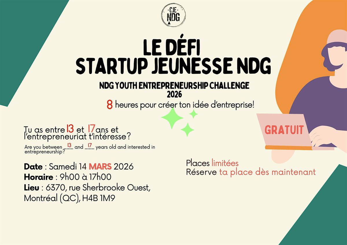 Tu as entre 13 et 17 ans et l’entrepreneuriat t’intéresse?Le Carrefour jeunesse-emploi NDG t’invite à relever un défi unique : créer une mi