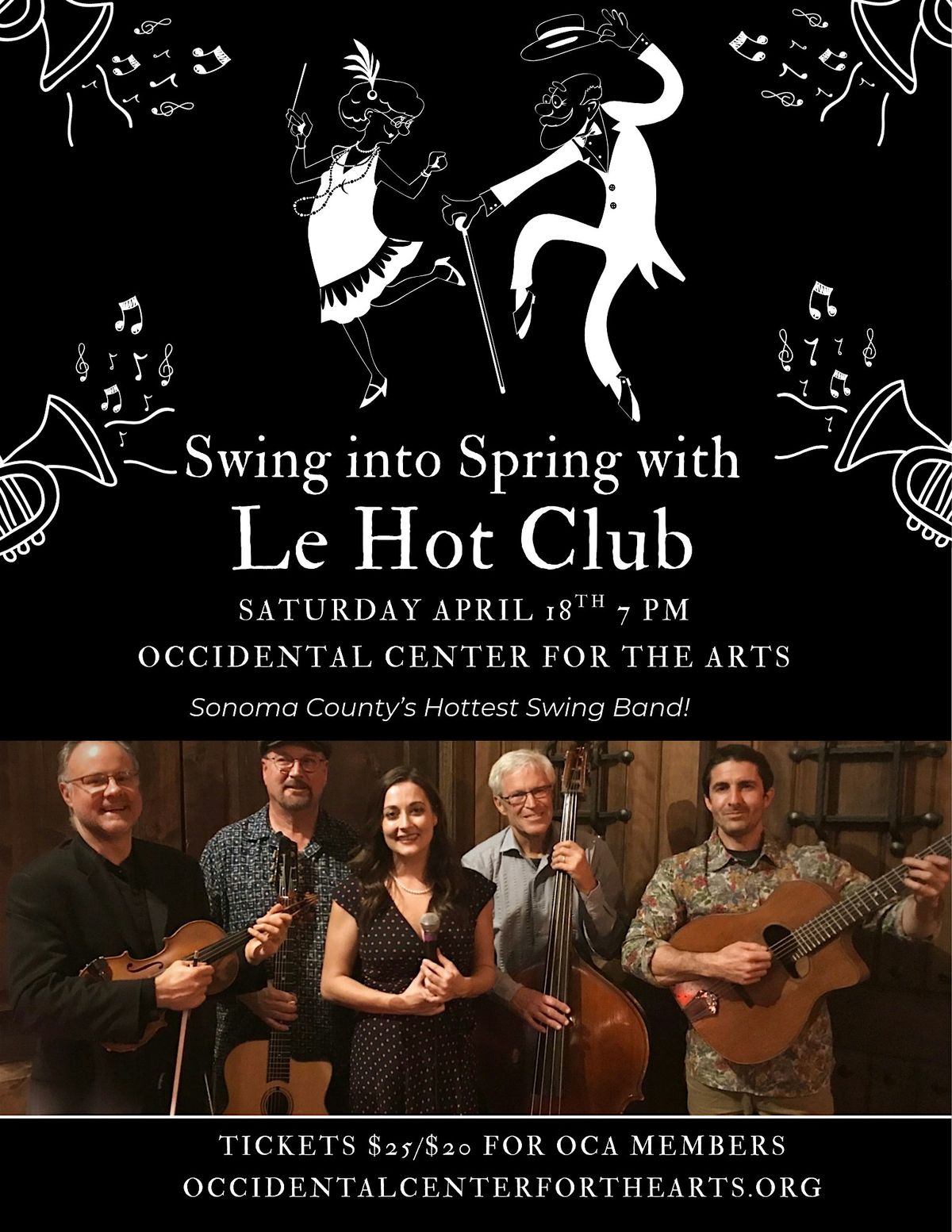 Le Hot Club Swing Band presents an evening of classic gypsy jazz inspired by the music of Django Reinhardt and the legendary Quintette du Hot Club de France. Known for their refined musicianship and deep command of the swing tradition, the ensemble brings elegance, vitality, and historical authenticity to this beloved jazz style. Musicians include Rick Fulkerson, Richard Loheyde, Jeremy Ginsberg and John Potter.
