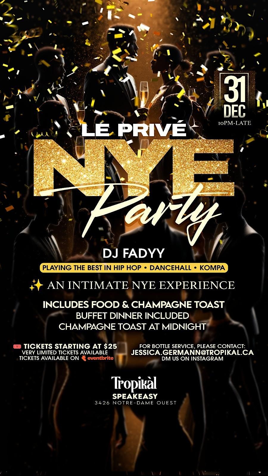 Get ready to party all night at Le Privé NYE—exclusive vibes, epic beats, and unforgettable memories! Food included and a champagne toast !!